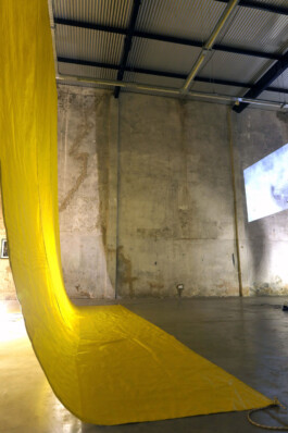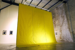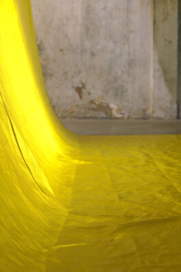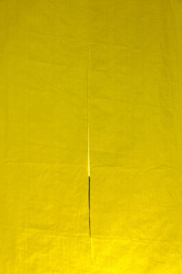 Truck Dyke is part of the Forma L series, the result of an ongoing investigation launched in 2019 that seeks to give visibility and form to elements of lesbian culture. Through surveys, interviews, archival analysis, writing, and collective work in Rosario, Basel, Hamburg, and Buenos Aires, the series constructs a fragmented and sensitive map of contemporary lesbian imaginaries. This piece references and reinterprets the work of Lucio Fontana: here, the vertical cut is a performative act, and from the slash, light emerges. The yellow color alludes to the “lemon” code used in England to refer to lesbians, a reference I documented during my residency in Hamburg.The work reclaims the stereotype of the “truck dyke”—a symbolic and visible figure in lesbian culture—and is constructed from truck tarp, reimagined as sculpture: monumental, elegant, and powerful. The piece shifts meanings and challenges stereotypes, asserting its place in space with a luminous, joyful, and defiant presence.